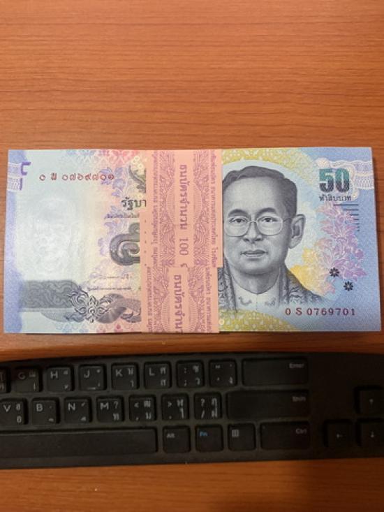 ธนบัตรในหลวงรัชกาลที่ 9 (แบบที่ 17) ฉบับราคา 50 บาท จำนวน 100 ฉบับ หมวด s เป็นหมวดพิเศษ