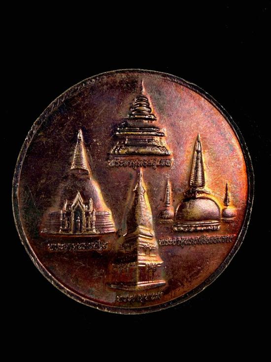 200... เหรียญกลมพระแม่ธรณี หลัง พระธาตุดอยสุเทพ พระธาตุนครปฐม พระธาตุนครศรีธรรมราช พระธาตุพนม 2559 ออกในงานครบรอบ 70 ปี พรรคประชาธิปัตย์