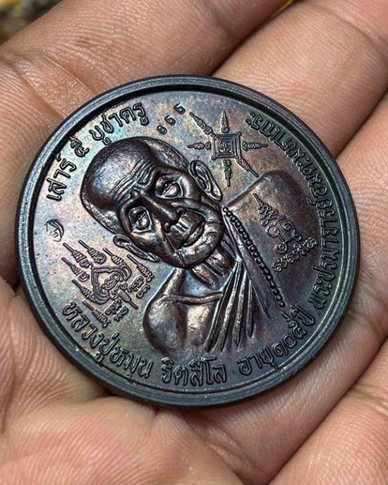 เหรียญบาตรน้ำมนต์ เนื้อทองผสม หลวงปู่หมุน รุ่น เสาร์ ๕ บูชาครู ตอกโค๊ต หมายเลข 3 หลัก ออกปี 2543 สภาพสวยเดิม