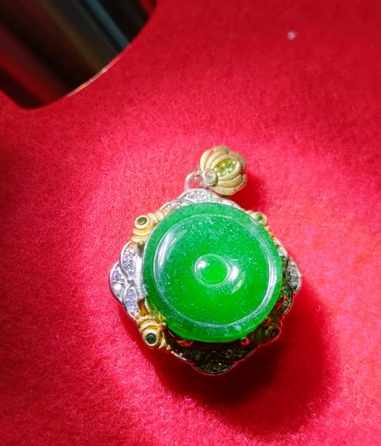 จี้หยกพม่า สีเขียวจักรพรรดิ ตัวเรือน925 มีตอก งานถมทองสองกษัตริย์ หยกเนื้อเนียนสวย แค่ค่าแรงตัวเรือนสั่ง เดี๋ยวนี้ราคานี้ไม่ได้แล้วค่ะ สินค้าใหม่ ปิดเบาๆ รับประกันหยกแท้ เงินแท้ค่ะ
