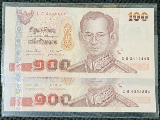 ธนบัตร 100 บาท ร.9 หลังเลิกทาส ทีเดียว 2 ใบ เลขสวยๆ ทั้ง2ใบ ไม่ผ่านการใช้งาน