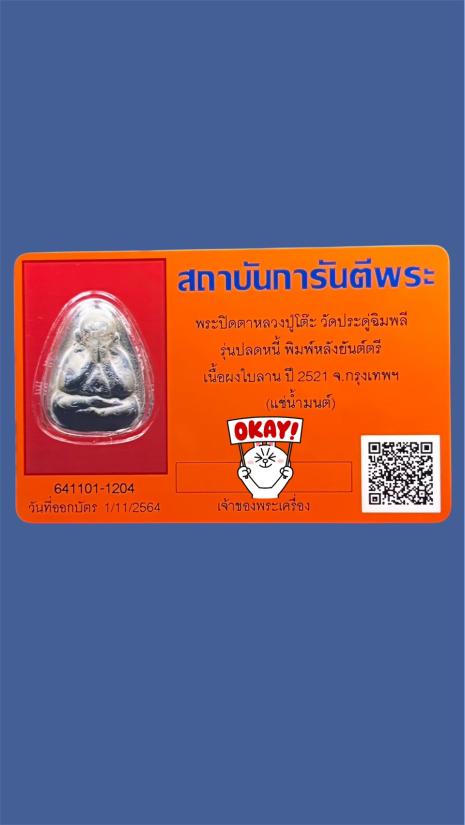 พระปิดตาปลดหนี้ หลวงปู่โต๊ะ ( พระสวย มีเส้นเกศา นิ้วมือชัดเจน ยันต์หลังชัด / ส่งออกบัตรรับรองให้แล้ว วัดประดู่ฉิมพลี พิมพ์หลังยันต์ตรี เนื้อผงใบลาน