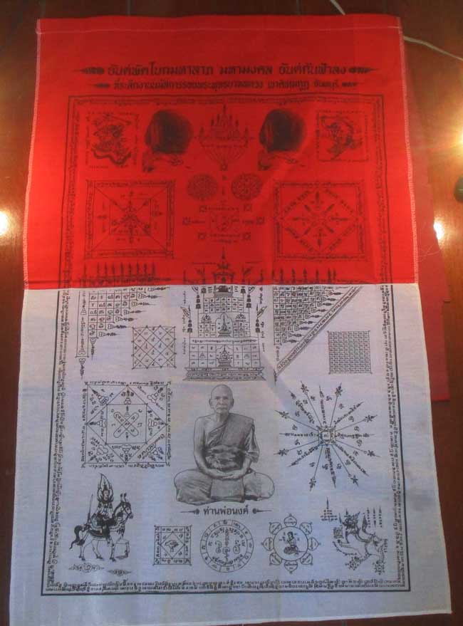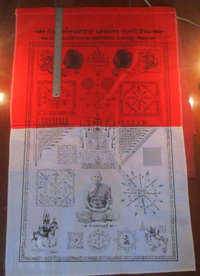 ผ้ายันต์ พัดโบกมหาลาภ มหามงคล ยันต์กันฟ้าลง