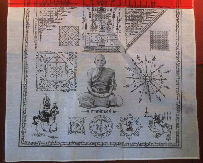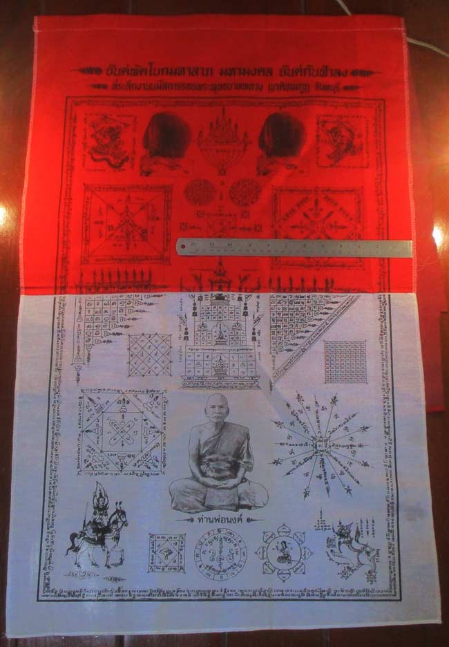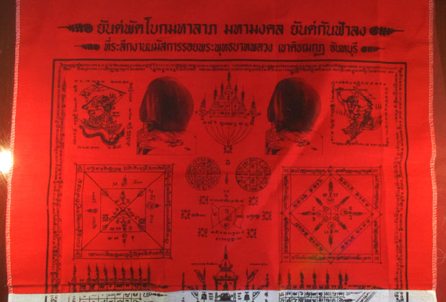 ผ้ายันต์ พัดโบกมหาลาภ มหามงคล ยันต์กันฟ้าลง ที่ระลึกงานนมัสการรอยพระพุทธบาทหลวง เขาคิชฌกูฏ จันทบุรี ครับ (พระบ้าน ครับ)