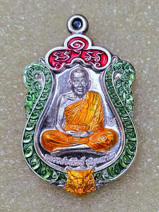 เหรียญเสมาหลวงพ่อพัฒ สยบไพรีพินาศ เนื้อเงินลงยา เลข 857 สภาพสวยเดิมๆตามรูปพร้อมกล่อง รับประกันแท้มาตรฐานสากลครับ