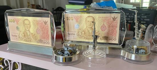 เคาะเดียวปิดขั้นต่ำ สำหรับ ...ธนบัตร100 บาท +ชุดกล่องดนตรี เพลงพระราชนิพนธ์ ที่ระลึกเนื่องในโอกาสพระราชพิธี มหามงคลเฉลิมพระชนมพรรษา 7 รอบ 84 พรรษา เพลงไม่ซ้ำกันครับ ได้ไป 2 ชุด มี 1 ชิ้นด้านบนหลุดตามภาพ แต่หีบเพลงใช้งานได้ตามปกติไขลานใต้หีบเพลง รับประกันความพอใจ 7 วันคืนเงินเต็ม