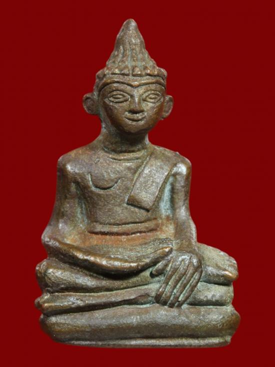 พระชัยวัฒน์ หลวงพ่อเหลือ พระครูกาชาด เนื้อทองผสม พิมพ์ฐานเตี้ย วัดดอนศาลา พ.ศ.2535