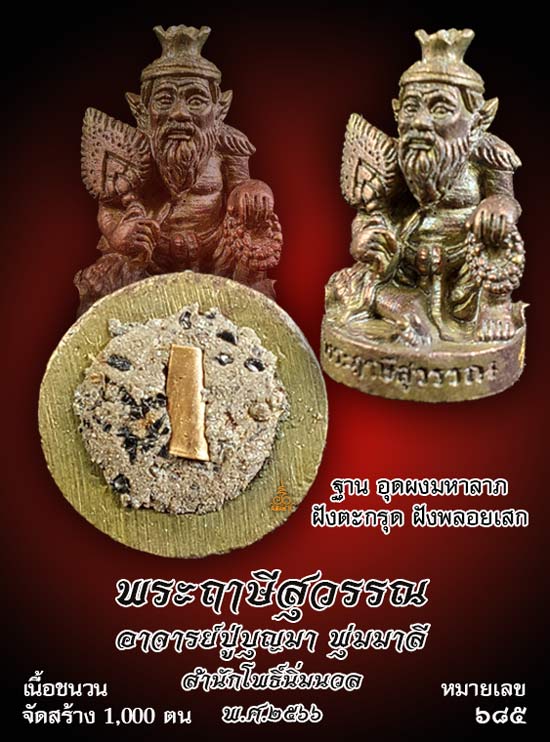 มวลสารที่ใช้อุดพร้อมด้วยตะกรุดที่เป็นหัวใจฤๅษีขอให้ผู้ที่นำไปบูชา ประสบความสำเร็จดังสมประสงค์ด้วยเถิด