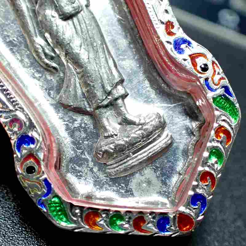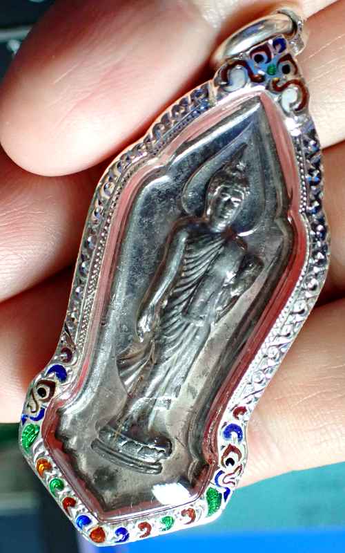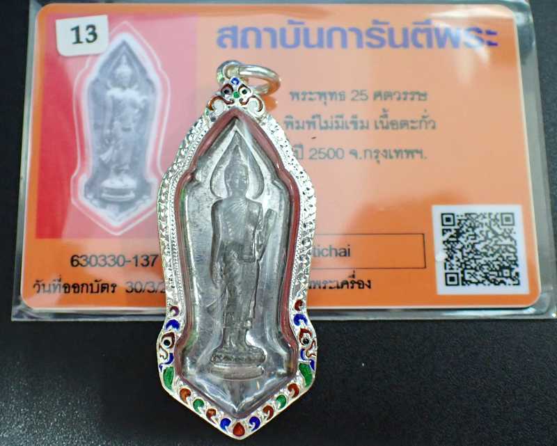 เหรียญ 25 ศตวรรษ เนื้อตะกั่ว พิมพ์พระศกจุด ปี2500 สภาพสวยๆเดิมๆ เลี่ยมกรอบเงินแท้กันน้ำสั่งตัดอย่างดี พร้อมบัตรรับรอง