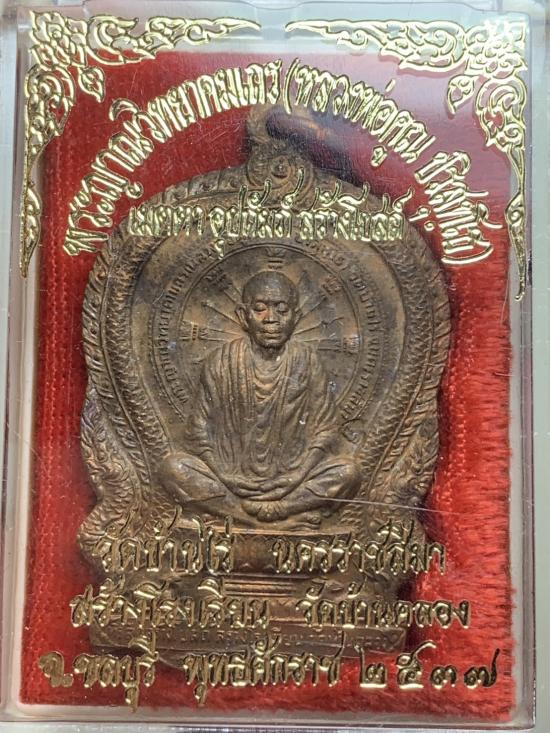 เหรียญนั่งพานหลวงพ่อคูณ วัดบ้านคลอง เนื้อทองแดง พร้อมกล่อง no.2