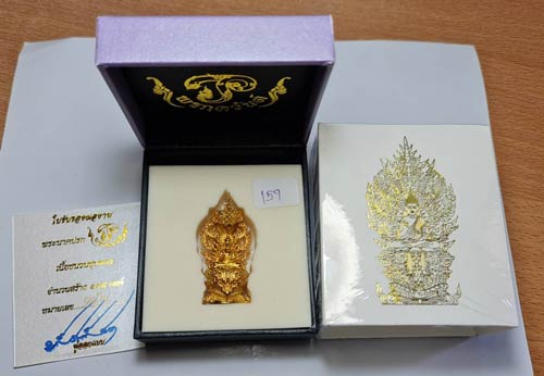 พระนาคปรก รุ่น "พรภควันต์" วัดลอน พัทลุง รายการที่ 14 องค์พระชนวนชุบทอง ฐานนากชนวนชุบทอง หมายเลข 157 พร้อมกล่องเดิมๆครับ (จอง 1,300)