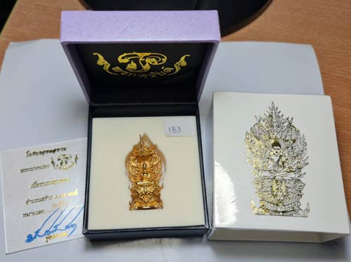 พระนาคปรก รุ่น "พรภควันต์" วัดลอน พัทลุง รายการที่ 14 องค์พระชนวนชุบทอง ฐานนากชนวนชุบทอง หมายเลข 153 พร้อมกล่องเดิมๆครับ (จอง 1,300)