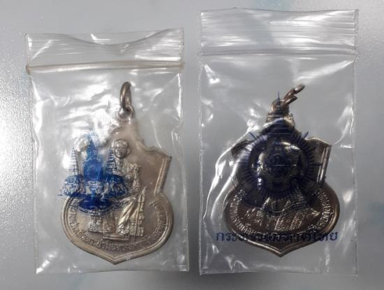 เหรียญ ร.9 นั่งบัลลังก์ ปี2539 เนื้ออัลปาก้า กระบี่ยาว และเหรียญเสมา ที่ระลึกพระชนมายุ 72 พรรษา เนื้ออัลปาก้า ปี2542 รวม 2 เหรียญ