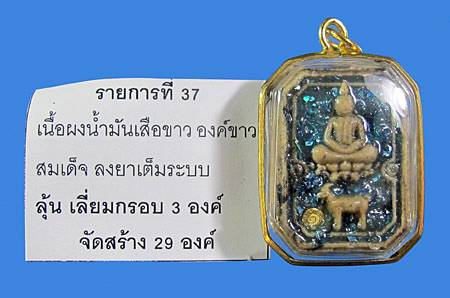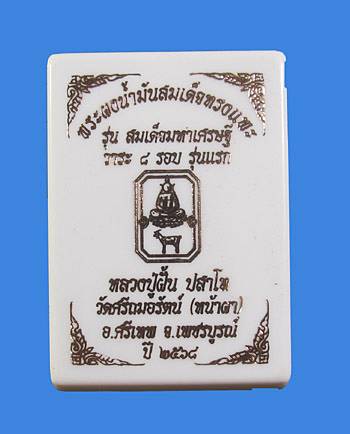 - พระเนื้อผงน้ำมันเสือขาว องค์ขาวสมเด็จลงยาเต็มระบบ หลวงปู่ฝั้น วัดศรีถนอมรัตน์ จ.เพชรบูรณ์ เลี่ยมกรอบ สร้าง 3 องค์ เลข ๑