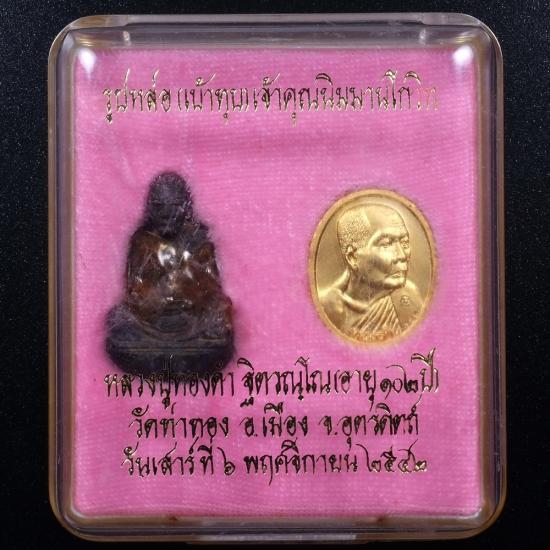 รูปหล่อเบ้าทุบเนื้อนวะ หลวงพ่อทองดำ วัดท่าทอง หมายเลข 818 แดงเคาะแรก