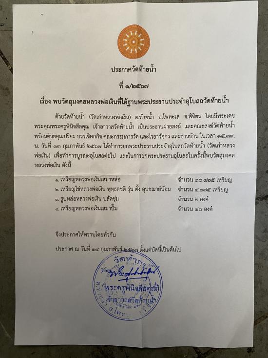 วัดใจเคาะเดียวได้แค่ไหนเอาแค่นั้น เหรียญหลวงพ่อเงิน วัดท้ายน้ำ(วัดเก่าหลวงพ่อเงิน) สร้างปี2500 ค้นพบที่ใต้ฐานพระประธานในโบสถ์ เนื่องจากทางวัดต้องการบูรณะอุโบสถวัดท้ายน้ำ พบวัตถุมงคลจำนมาก มี 4 แบบ แบบที่นำมาลงประมูลคือ เหรียญหลวงพ่อเงินเสมาหล่อ พร้อมกล่องและใบรับรองจากทางวัด ไม่ต้องวัดตาวัดดวง พระแท้100%