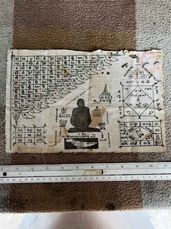 ผ้ายันต์100ปี หลวงพ่อเคน วัดถ้ำเขาอีโต้ ปั้มตราวัด สภาพเก่าเก็บตามรูป