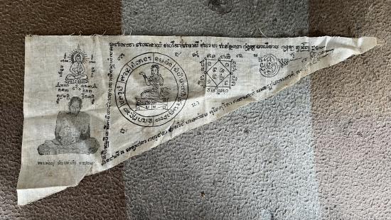 ผ้ายันต์ธง หลวงพ่ออยู่ วัดบางหัวเสือ สวย ไม่ทราบปี มีอายุ