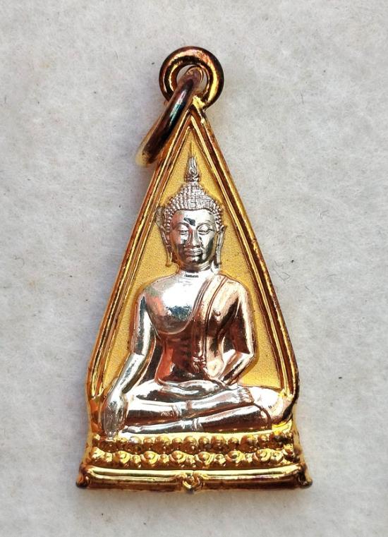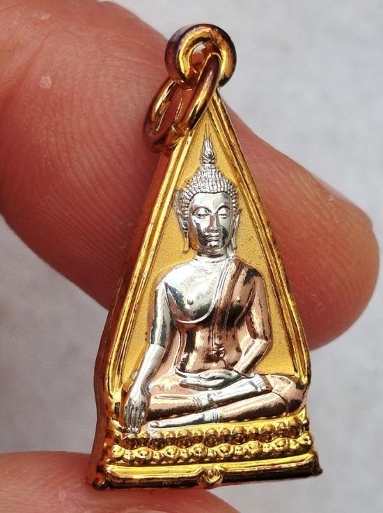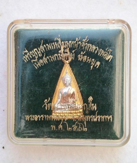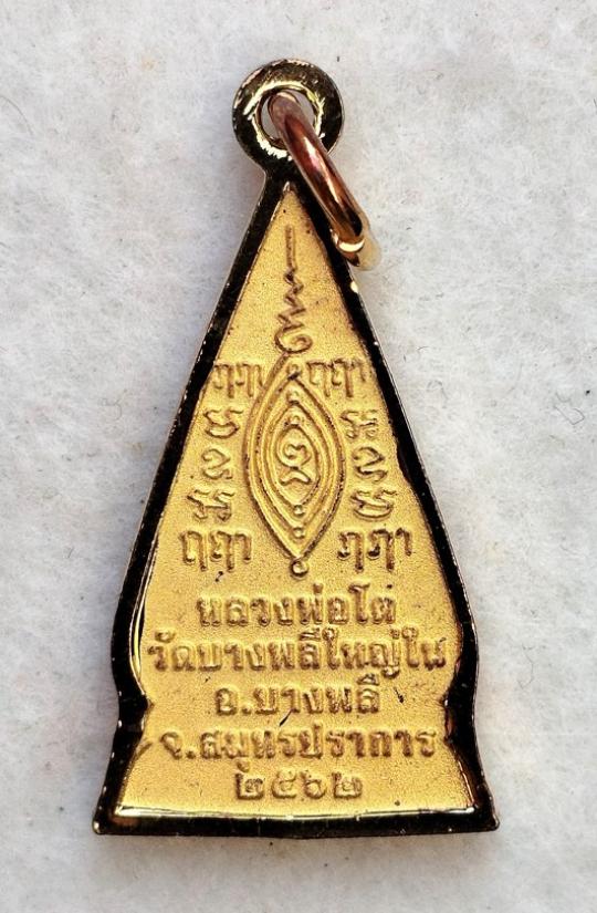 เหรียญสามเหลี่ยมหน้าจั่ว หลวงพ่อโต วัดบางพลีใหญ่ใน ปี 2562 เนื้อสามกษัตริย์ กล่องเดิม