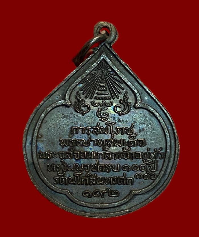 เหรียญหยดน้ำสมโภชพระบาทสมเด็จพระจุลจอมเกล้าเจ้าอยู่หัว ทรงผนวชครบ 100 ปี รัตนโกสินทรศก 192 เนื้อทองแดง สวยมาก