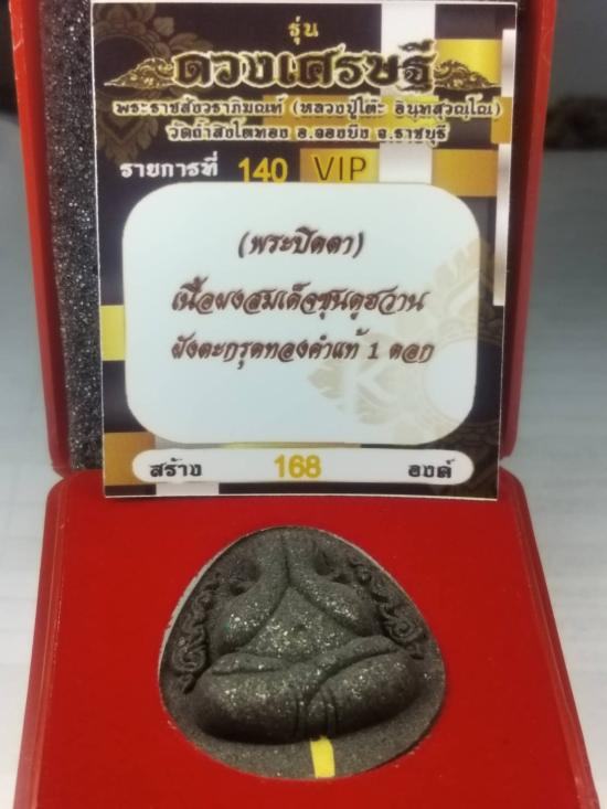 พระปิดตา รุ่น ดวงเศรษฐี เนื้อ ผงสมเด็จซุนดูฮวาน ฝังตะกรุดทองคำแท้ 1 ดอก สร้าง 168 องค์ หมายเลขนำฤกษ์ 78 หลวงปู่โต๊ะ วัดถ้ำสิงโตทอง ราชบุรี มวลสารและพิธีดีมาก มีกล่องเดิมจากวัด