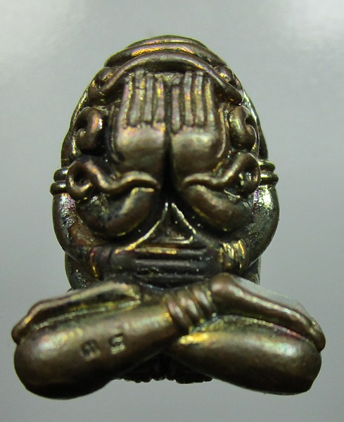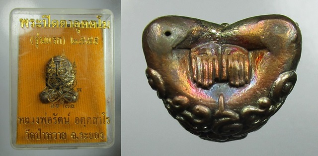 พระปิดตาอุตโม รุ่นแรก หลวงพ่อรัตน์ วัดป่าหวาย ระยอง เนื้อสัตตะ กล่องเดิม No.38