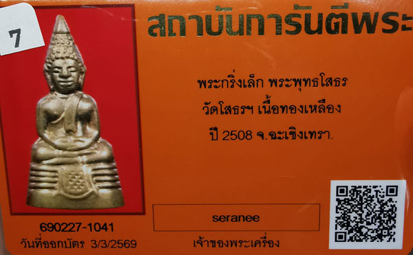 พระกริ่งเล็กพระพุทธโสธร วัดโสธรฯ เนื้อทองเหลือง กริ่งดัง ก้นกลึง ปี2508 จ.ฉะเชิงเทรา + บัตรG-pra สภาพสวยเดิมค่ะ สภาพตามรูปทุกประการค่ะ