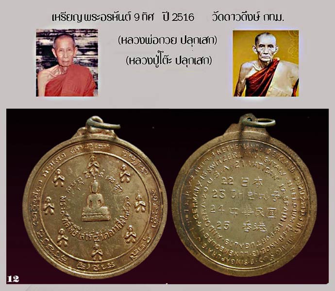 ชุดเหรียญพระอรหันต์ 9 ทิศ วัดดาวดึงส์ พิธีใหญ่ ปลุกเสกในพิธีเสาร์ 5 ปี 2516 เกจิร่วมปลุกเสกมากมาย อาทิหลวงปู่โต๊ะ หลวงปู่ธูป พ่อกวย และยังปลุกเสกรอบโลกอีก 25 ประเทศ โดยทั้งชุดมี 4 เหรียญ คือ