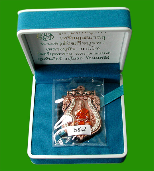 เหรียญเสมาฉลุ บงกชบูรพา หลวงปู่บัว เนื้อนวะลงยา ตระกรุดทองคำ