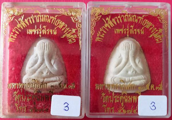 3,เคาะเดียวแดงสบายใจครับ พระปิดตาวัดประดู่ฉิมพลี รุ่นเพชรรุ่งโรจน์ พิมพ์ปลดหนี้หลังยันต์นะ ฝังตะกรุดเงิน 2 ดอก และ พิมพ์ปลดหนี้หลังยันต์นะ ไม่มีตะกรุด ปี 2535 ผสมผงเก่าหลวงปู่โต๊ะน่าบูชาครับ