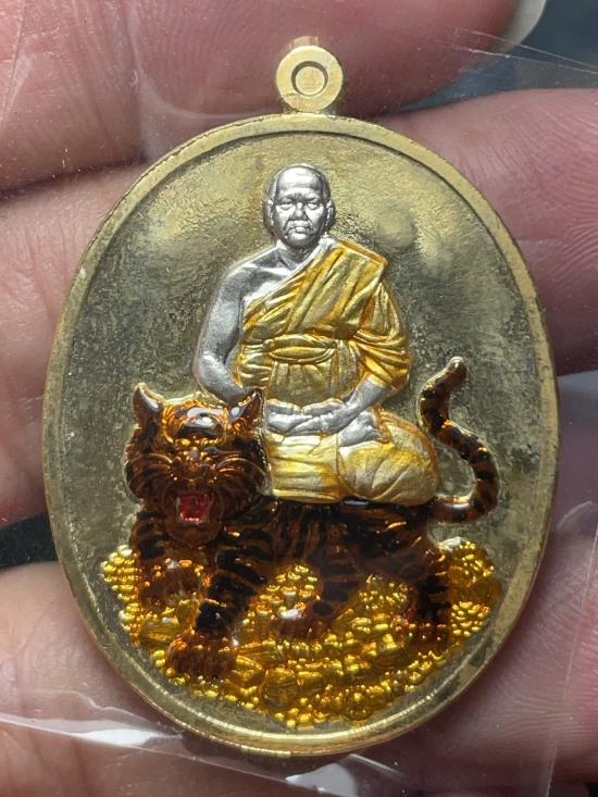 เหรียญ ๙ แชะ หลวงพ่อประสูติ วัดในเตา จ.ตรัง เนื้อทองแดงกะไหล่ทอง หน้ากากเงินลงยา สวยเดิมๆพร้อมกล่องคับ