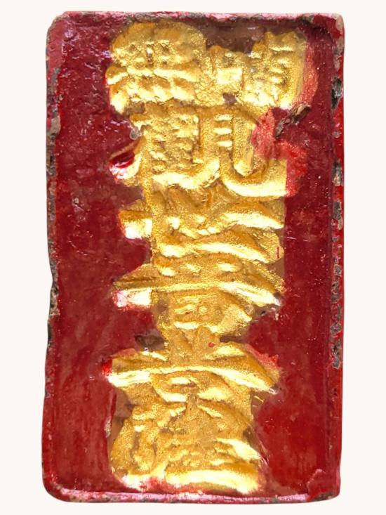 เจ้าแม่กวนอิม หลังภาษาจีน เนื้อดินเผาลงชาด ไม่ทราบรุ่น