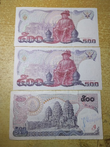 แบงค์ธนบัตรรุ่นเก่าใบละ๕๐๐บาท๓ใบสภาพใหม่