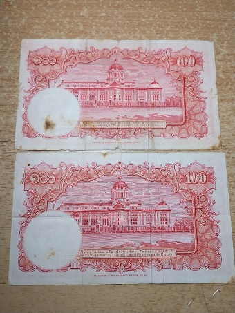 แบงค์ธนบัตรรุ่นเก่าใบละ๑๐๐บาท๒ใบสภาพใหม่