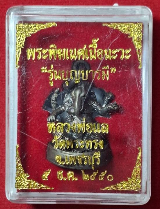 รูปหล่อพระพิฆเนศ หลวงพ่อแล วัดพระทรง จ.เพชรบุรี ปี2550 เป็นรูปหล่อรุ่นบุญบารมี เนื้อนวะ สภาพสวยมากๆและมาพร้อมกล่องเดิมๆด้วยนะครับ