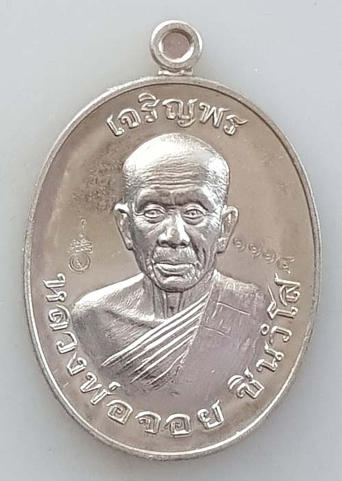 ::(วัดใจต่ำจอง((ราคาจอง 300 บาท))หลวงพ่อจอย ชินวังโส วัดโนนไทย(รุ่น-เจริญพรบนครึงองค์รุ่นแรก):: ::(**A12-เหรียญรูปไข่**เนื้อ-อัลปาก้า หมายเลข 1114 ราคาจอง 300 บาท::พร้อมกล่อง ****((เงาสวย))***