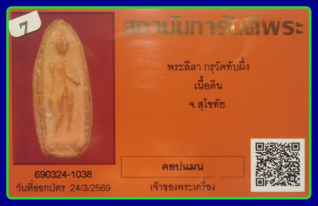 บัตรการันตี-1000-พิมพ์หายากสุดๆ พระลีลา เนื้อดินกรุวัดทับผึ้ง จ.สุโขทัย พ.ศ. 2473