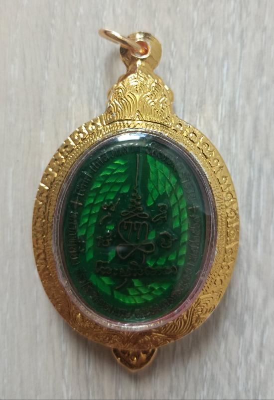 วัดใจเคาะเดียวแดงจ้า เหรียญฤาษีตาไฟ หลวงพี่เลี้ยง วัดจอมเกษ เนื้อนวะลงยาเขียวหน้าหลัง หน้ากากเพ้นท์ พร้อมตลับชุบทองฝังเพชร เคาะเดียวแดงจ้า