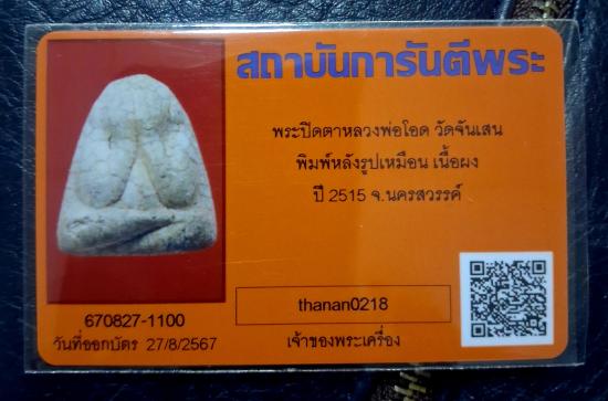 พระผงปิดตาหลวงพ่อโอด รุ่นแรก ปี 2515 วัดจันเสน พร้อมบัตรรับรอง