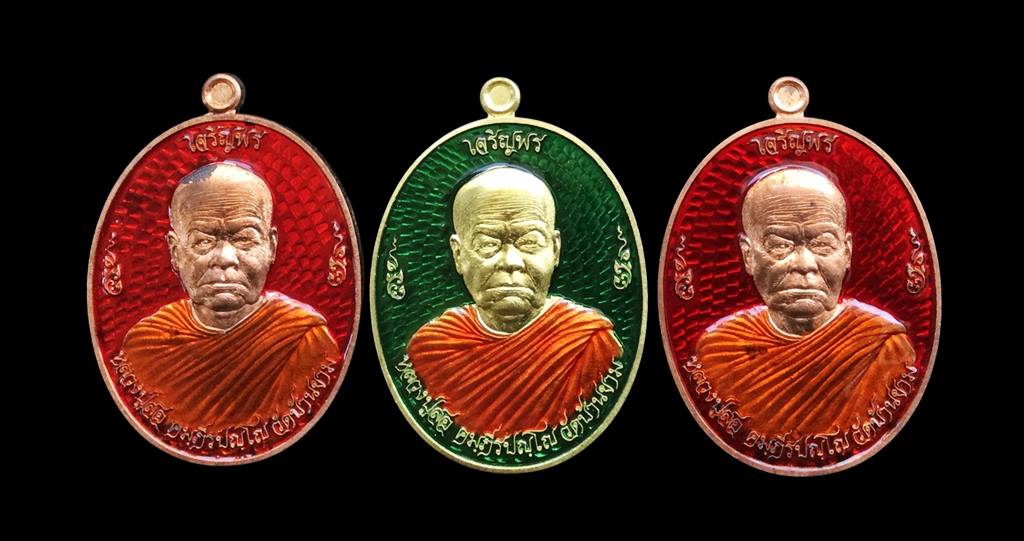 +!!เคาะเดียวllดง ตลอดสาย!!+ (รับชุด 3 เหรียญ) เหรียญเจริญพร หลวงปู่สอ วัดบ้านขาม จ.สุรินทร์ ปี2559 (เนื้อทองทิพย์ลงยาเขียว+ทองแดงลงยาแดง) เลขโค้ดสวยๆตามรูป พร้อมกล่องครับ