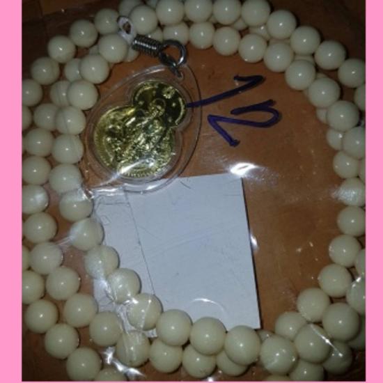 หลวงตาม้า วัดถ้ำเมืองนะ เหรียญเบิกทรัพย์จักรพรรดิ์พร้อมประคำจักรพรรดิ์ ทองเหลือง