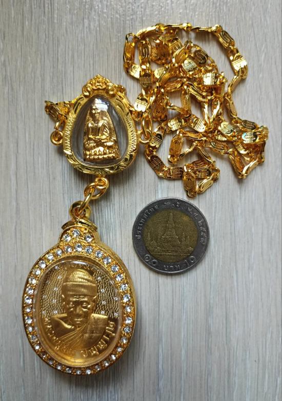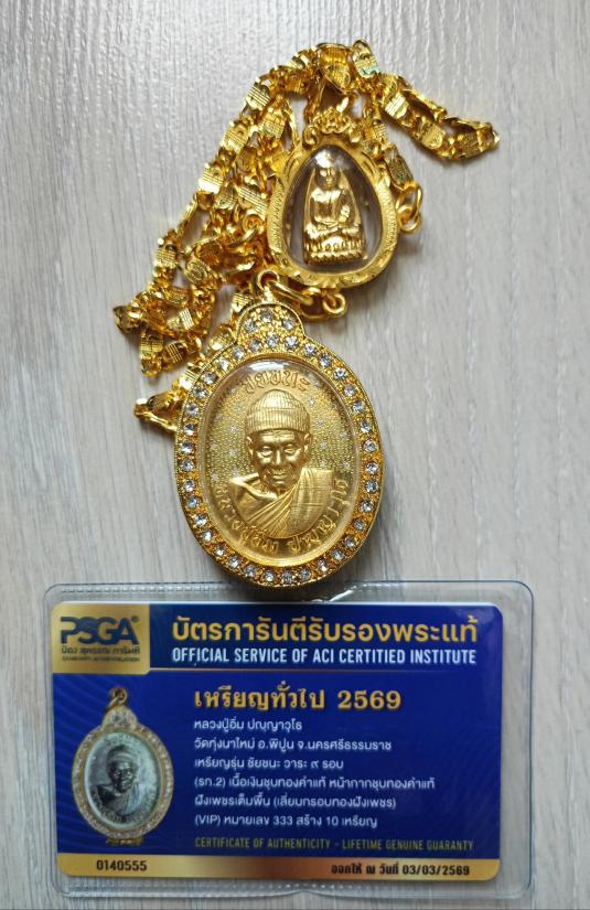 วัดใจเคาะเดียวแดงจ้า เหรียญชัยชนะหลวงปู่อิ่ม วัดทุ่งนาใหม่ เนื้อเงินชุบน้ำทองคำแท้ ฝังเพชรเต็มพื้น พร้อมชุดสร้อย สร้าง10เหรียญ หมายเลข333 พร้อมบัตรรับรอง PSGA เคาะเดียวแดงจ้า