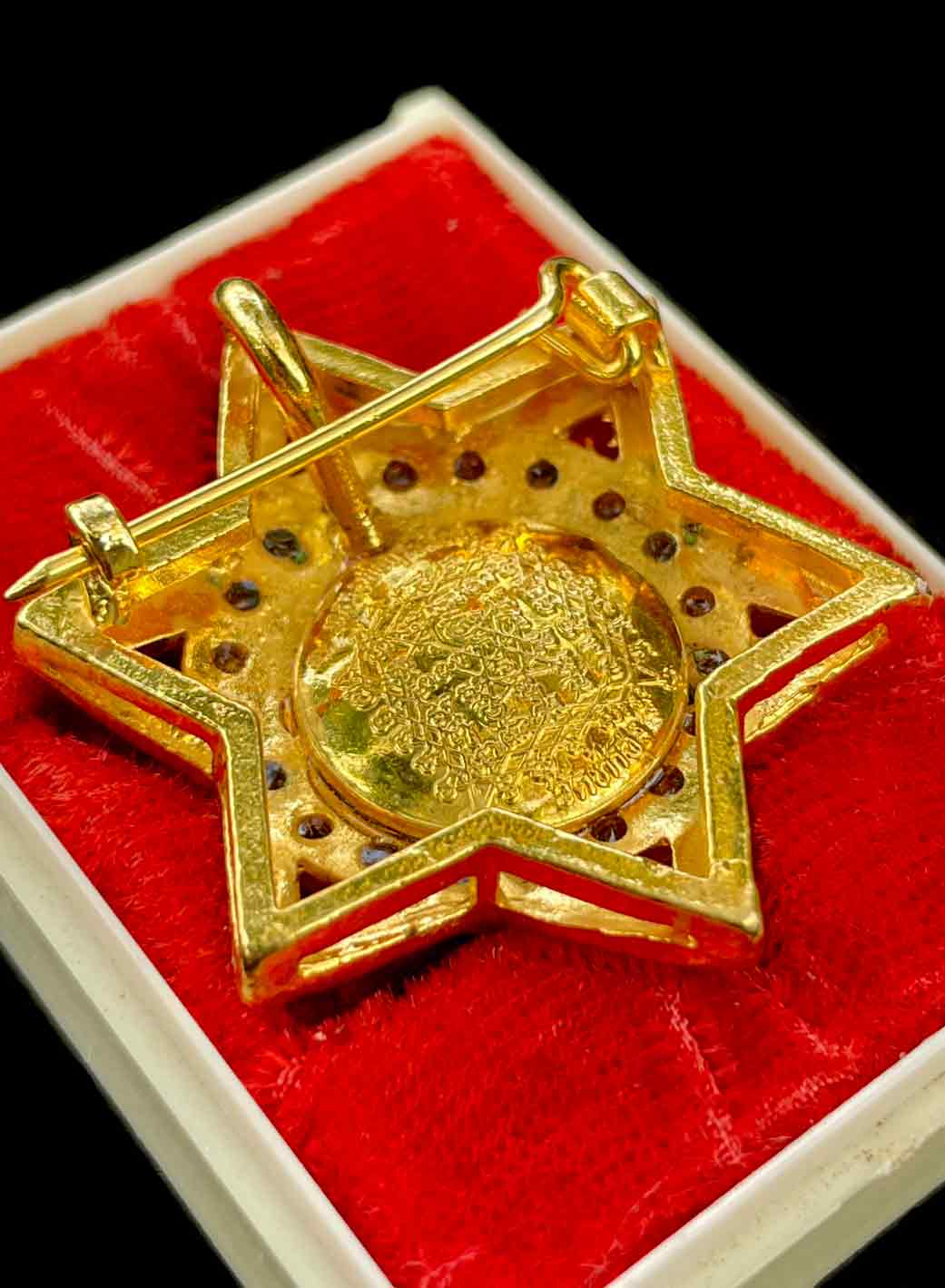 เข็มกลัดดาว หลังยันต์เกาะเพชร งานเป่ายันต์เกราะเพชร ครั้งที่ 5 ปี 2528