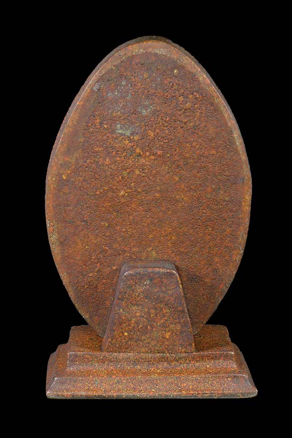 พระบูชาโล่ตั้งโต๊ะรูปเหมือนนั่งยองแจกแบงค์ ( ฐาน 4 นิ้ว x 3 นิ้ว , สูง 7.5 นิ้ว ) มั่ง มี ศรี สุข ร้านสามจักร จัดสร้างแจกให้ลูกค้า ( เนื้อซิลิก้ากระเบื้อง ) ไม่ทราบปีสร้าง ** 1 **