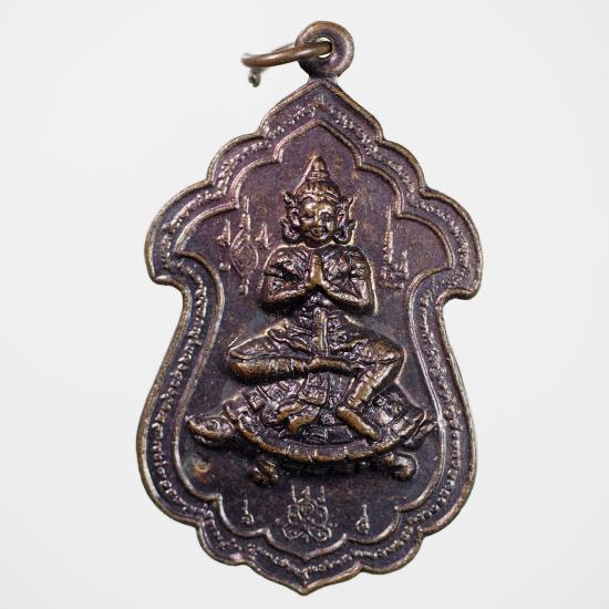 เหรียญเทวดาขี่เต่า เนื้อทองแดงลมดำ โค๊ตเลข 5** ปี 2543 หลวงพ่อสาคร วัดหนองกรับ ( เหรียญประสบการณ์ )