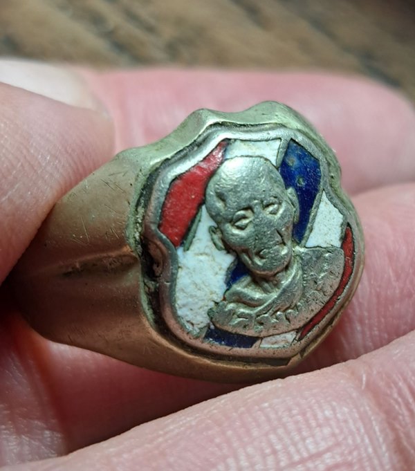 แหวนหลวงพ่อสาย ปี 2516 วัดหนองสองห้อง แห่ง บ้านแพ้ว สมุทรสาคร ลายธงชาติ หายากครับ