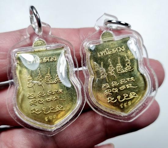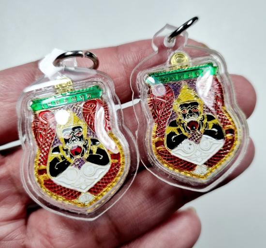 ราหู ลป.ศิลา รุ่นเหนือรุ่นเหนือดวง วัดพระธาตุหมื่นหิน เนื้อทองฝาบาตรลงยา 2เหรียญ เเลี่ยมพร้อมใช้