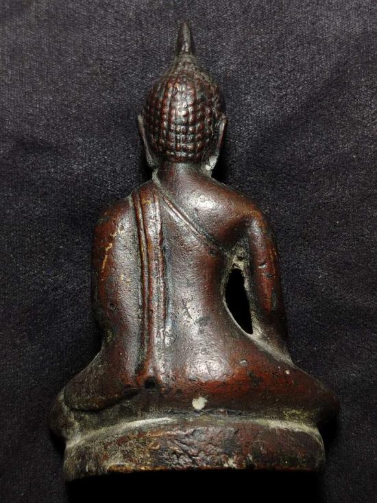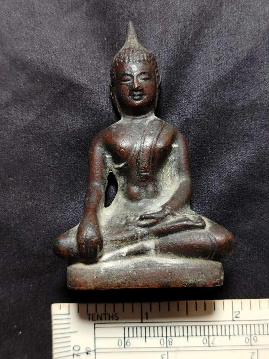 พระพุทธ เนื้อโลหะผสม หน้าตัก 2 นิ้ว ใต้ฐานอุดกริ่งดัง เนื้อเก่าได้อายุ ไม่ทราบที่ เคาะเดียวแดง