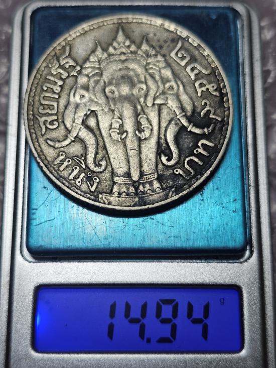 เหรียญเนื้อเงิน 1 บาท ร.6 ช้างสามเศียร พ.ศ.2459 |