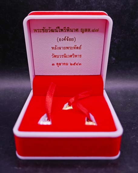 !!!!วัดใจ 9 บาท!!!! ชุด3องค์ พระชัยวัฒน์ไพรีพินาศ ญสส87(องค์จ้อย) หลังลายพระหัตถ์ วัดบวรนิเวศวิหาร กรุงเทพฯ พ.ศ.2543 พร้อมกล่องเดิม